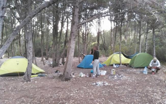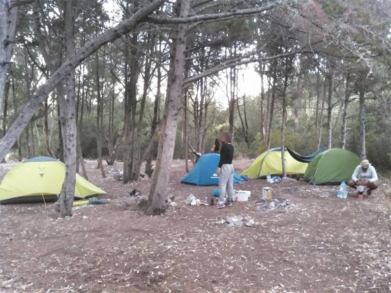 Just before getting on the beach Praia do Zavial, on your left, there is a small "forest". Perfect to set up your tent and hammoc and stay low profile. It's possible to do some small firecamp to cook.